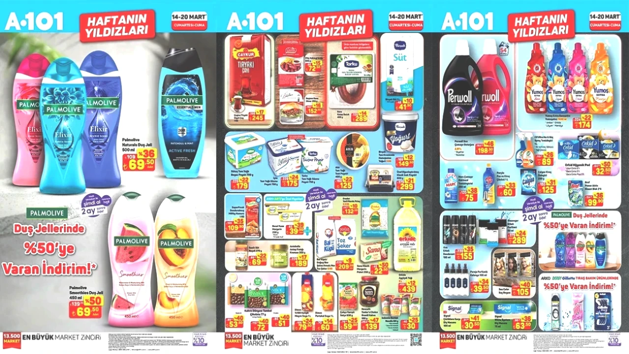 A101'in 14-20 Mart 2026 tarihleri arasında sunacağı kampanya ürünleri belirlendi. Ülke genelinde birçok noktada bulunan bu zincir market, müşterilerine özel fırsatlarla dolu ürünler sunuyor. Hafta sonu için hazırlanan bu kampanya ile birlikte A101 mağazalarında indirimli olarak bulabileceğiniz ürünler arasında ayçiçek yağı, yumuşatıcı, yüzey temizleme havlusu çeşitleri, duş jelleri ve peynir çeşitleri yer alıyor. 14-20 Mart tarihleri arasında geçerli olan özel indirimli ürünleri aşağıda sıraladık. İşte A101'in 14-20 Mart 2026 tarihleri arasındaki haftanın öne çıkan fırsatları..