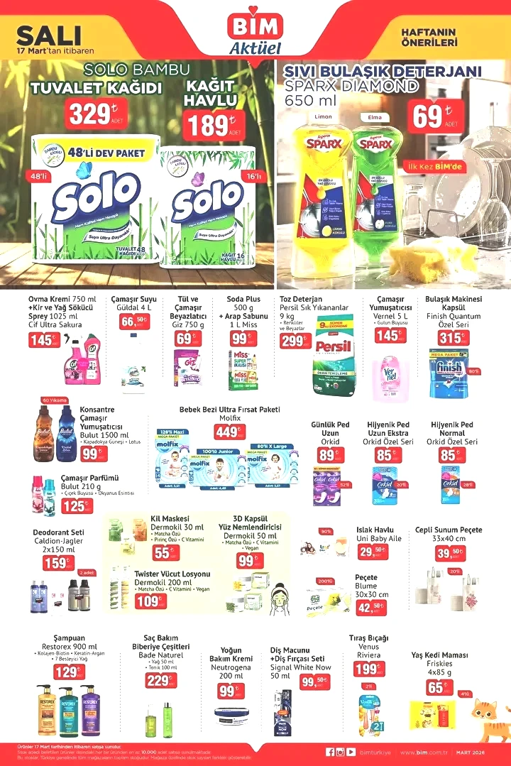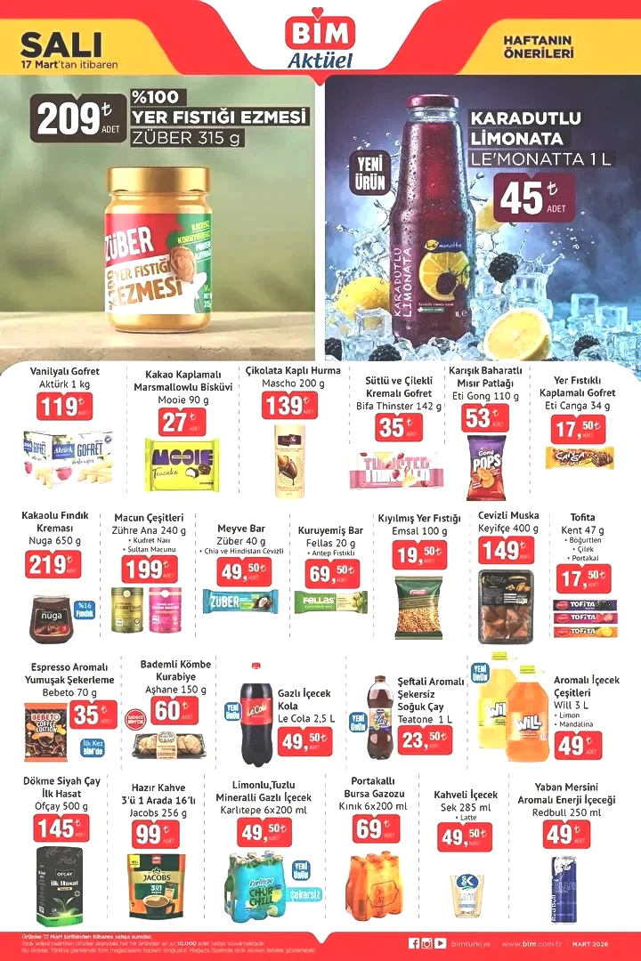 BİM’in yeni aktüel ürün kataloğu açıklandı. Bayramın ilk günü olan Cuma, ürünlerin mağazalarda Çarşamba günü görünmesi bekleniyor. 17, 18 ve 20 Mart tarihlerinde BİM marketlerinde temel gıda maddelerinden teknoloji malzemelerine, piknik eşyalarından çocuk oyuncaklarına, hobi malzemelerinden temizlik ürünlerine ve mutfak eşyalarına kadar geniş bir ürün yelpazesi sunulacak. İşte BİM’in 17-18-20 Mart (Salı-Çarşamba-Cuma) aktüel broşürü!
